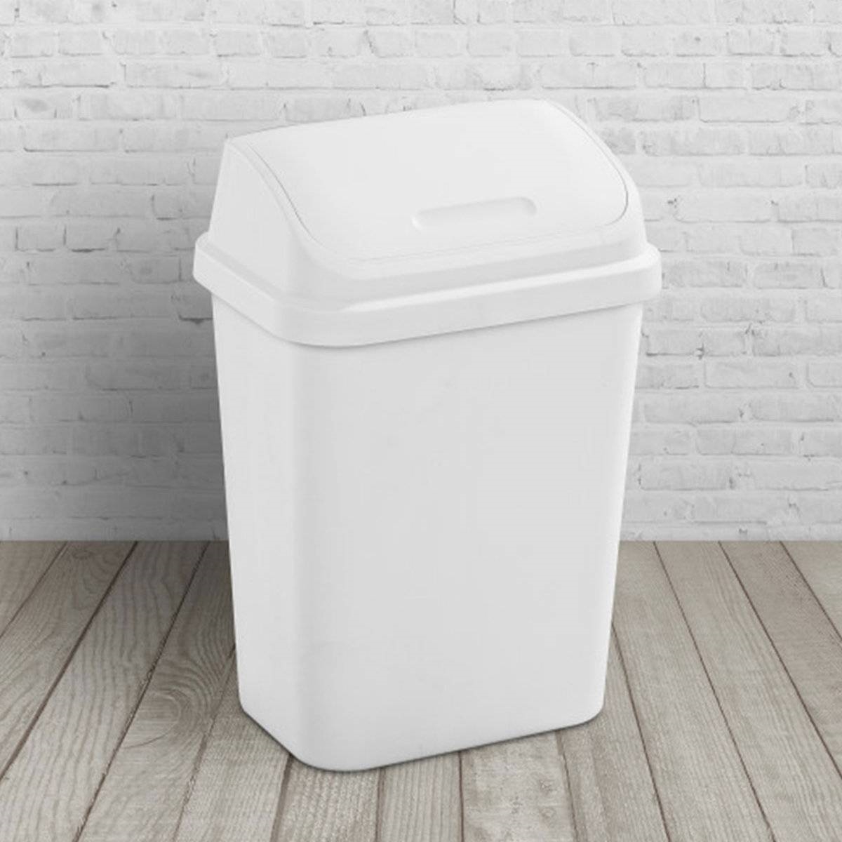 Discover the convenience and style of the 6-pack -7.8-Gallon SwingTop Wastebaskets. Perfectly designed for smaller spaces, each waste bin is a versatile solution for your office, dorm room, or laundry room. Includes 6 wastebaskets that open with a simple touch and remain securely in the upright position, ensuring easy disposal without the need for batteries or complex mechanisms. Swinging lid features a bag-hiding rim, maintaining a clean and organized appearance while discreetly concealing the trash liner. Built to withstand day-to-day use, the wastebasket boasts a durable design and easy-to-clean textured surface, ensuring simple maintenance Generous 7.8-gallon capacity, contemporary and sleek design, and classic white color add stylish sophistication to any home aesthetic