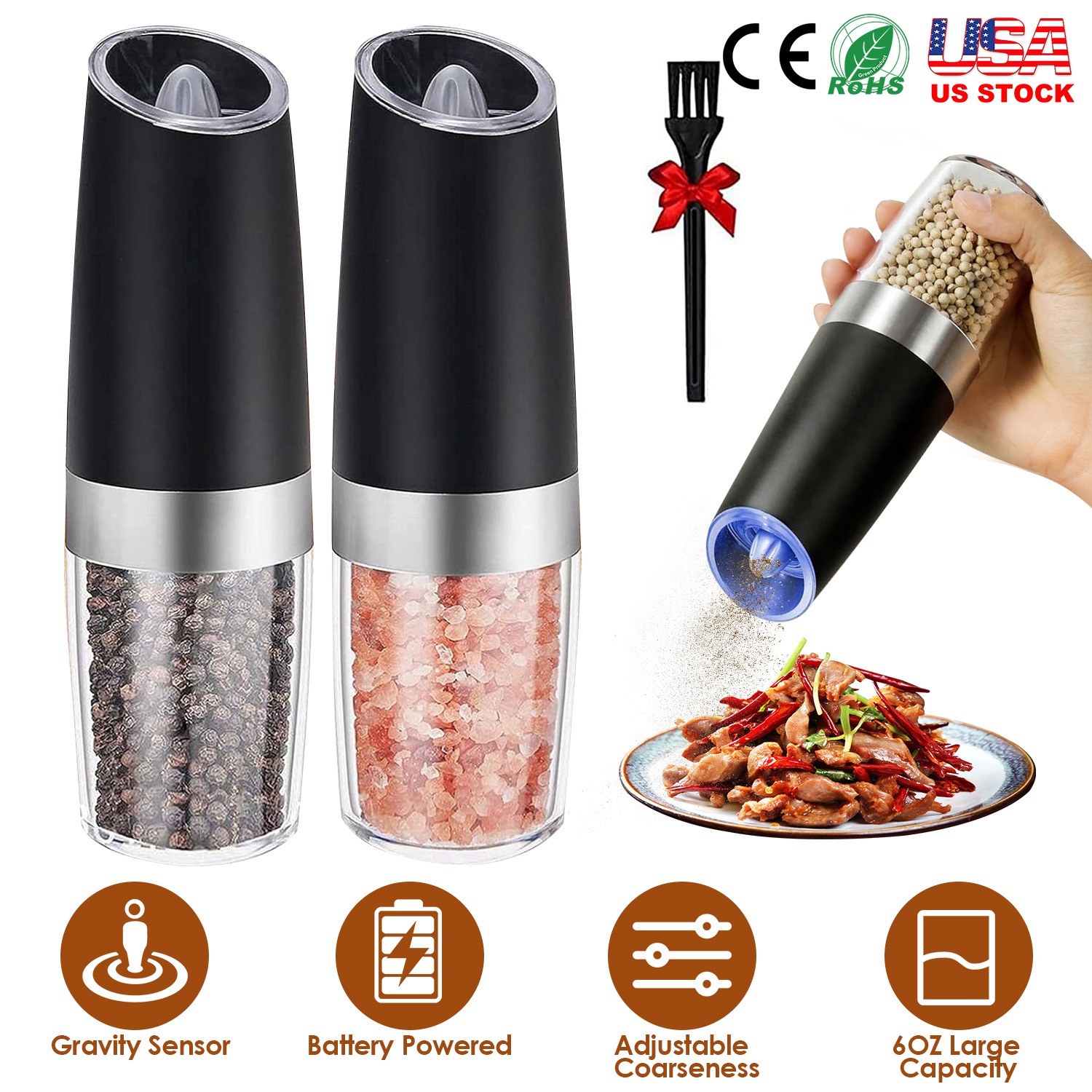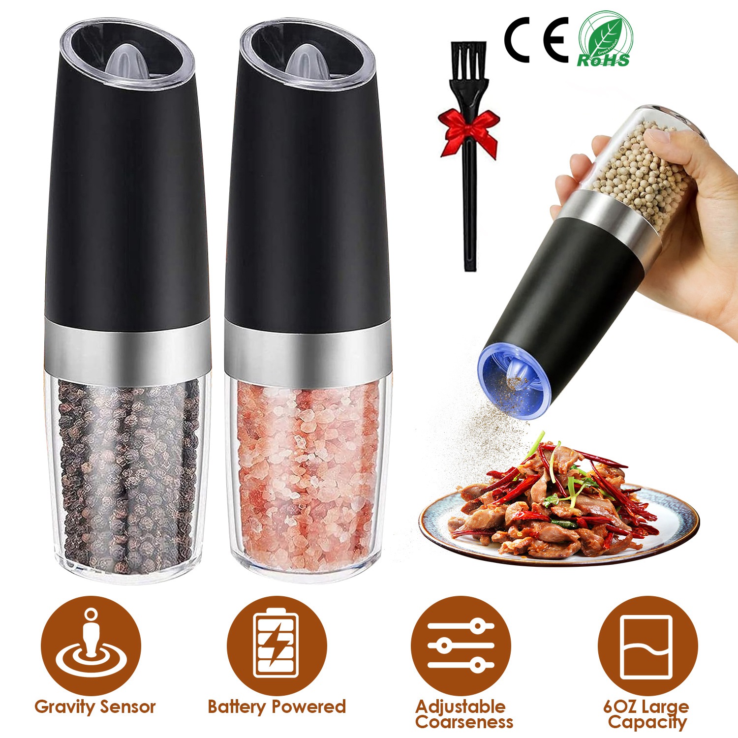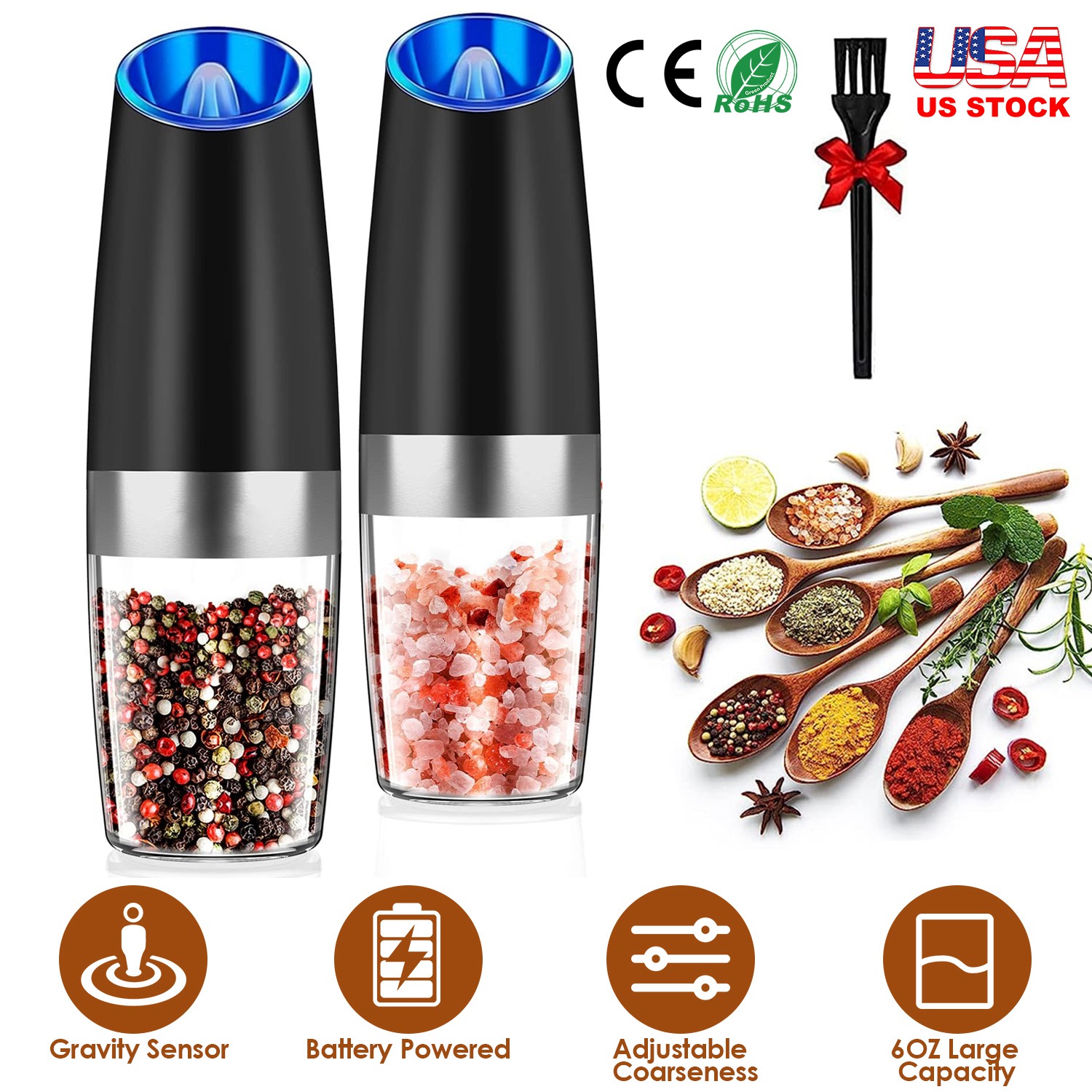 Home > 2Pcs Gravity Sensing Salt and Pepper Grinder Automatic Electric Salt Mill Grinder With Built-in LED Lights Adjustable Coarseness One Hand Operation Ba