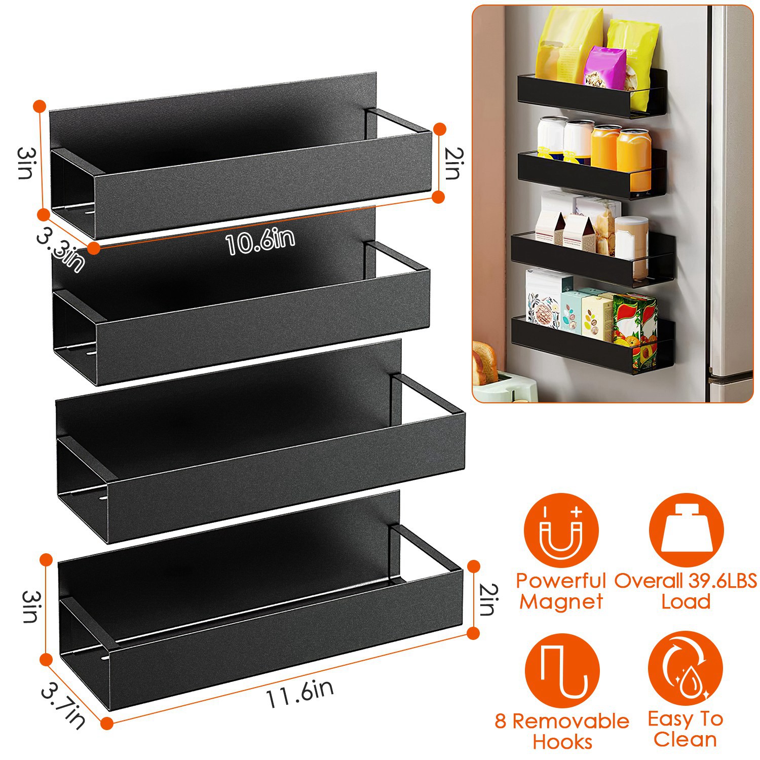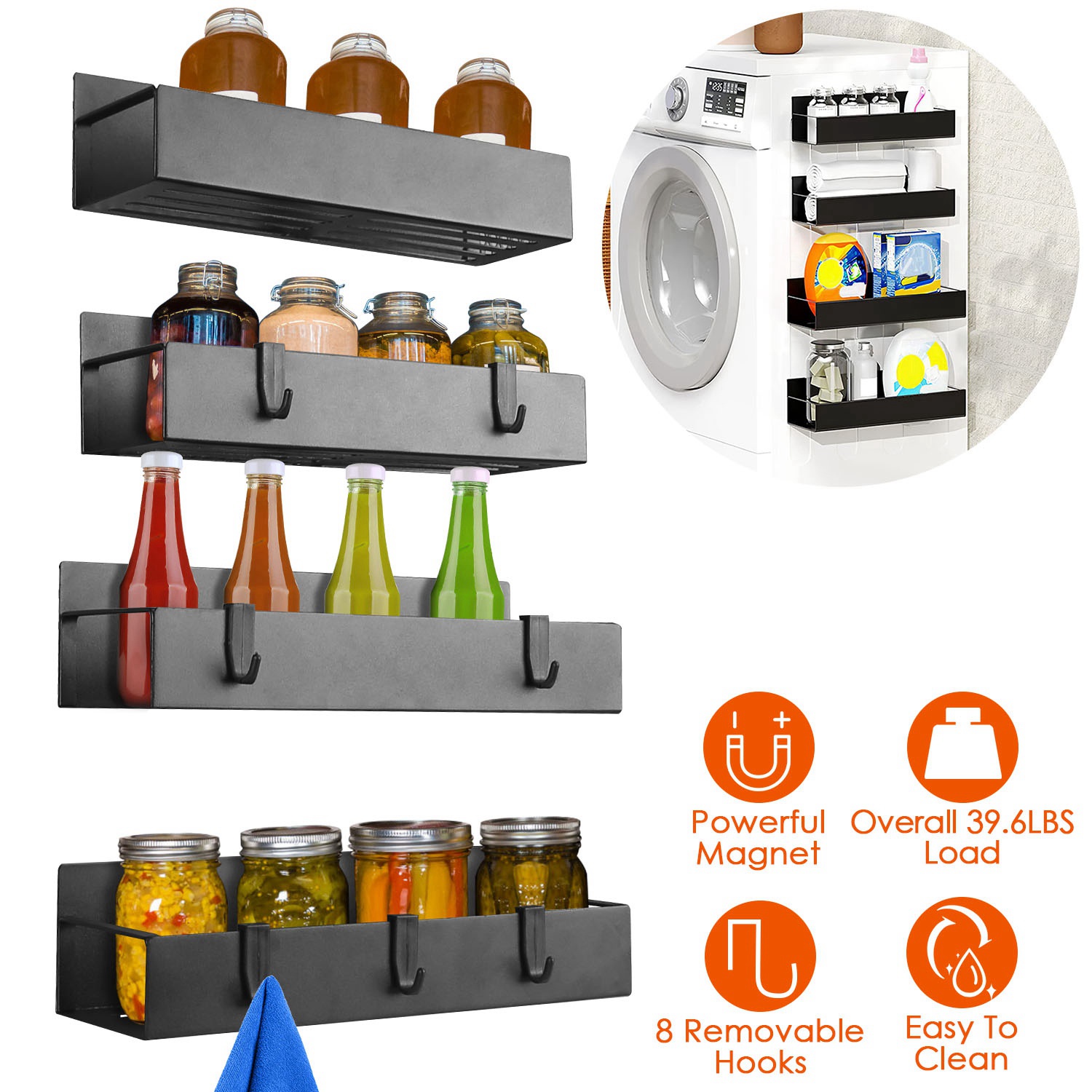 Home > 4Pcs Spice Rack Strong Magnetic Seasoning Storage Shelf with 8 Removable Hooks for Refrigerator Microwave Spice Storage Holder