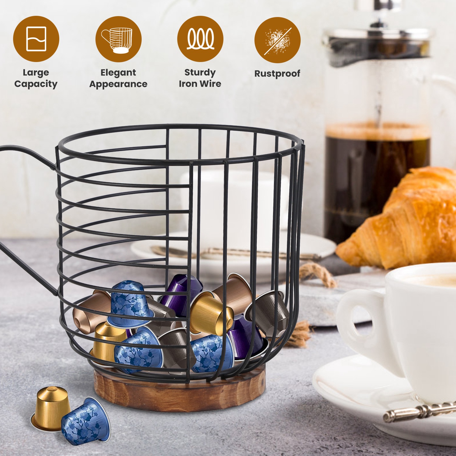 Home > Coffee Pod Holders Black Iron Wire K Cup Holder With Solid Wooden Base 30 Kcups Capsule Storage Espresso Organizer For Counter Kitchen Cafe Bar