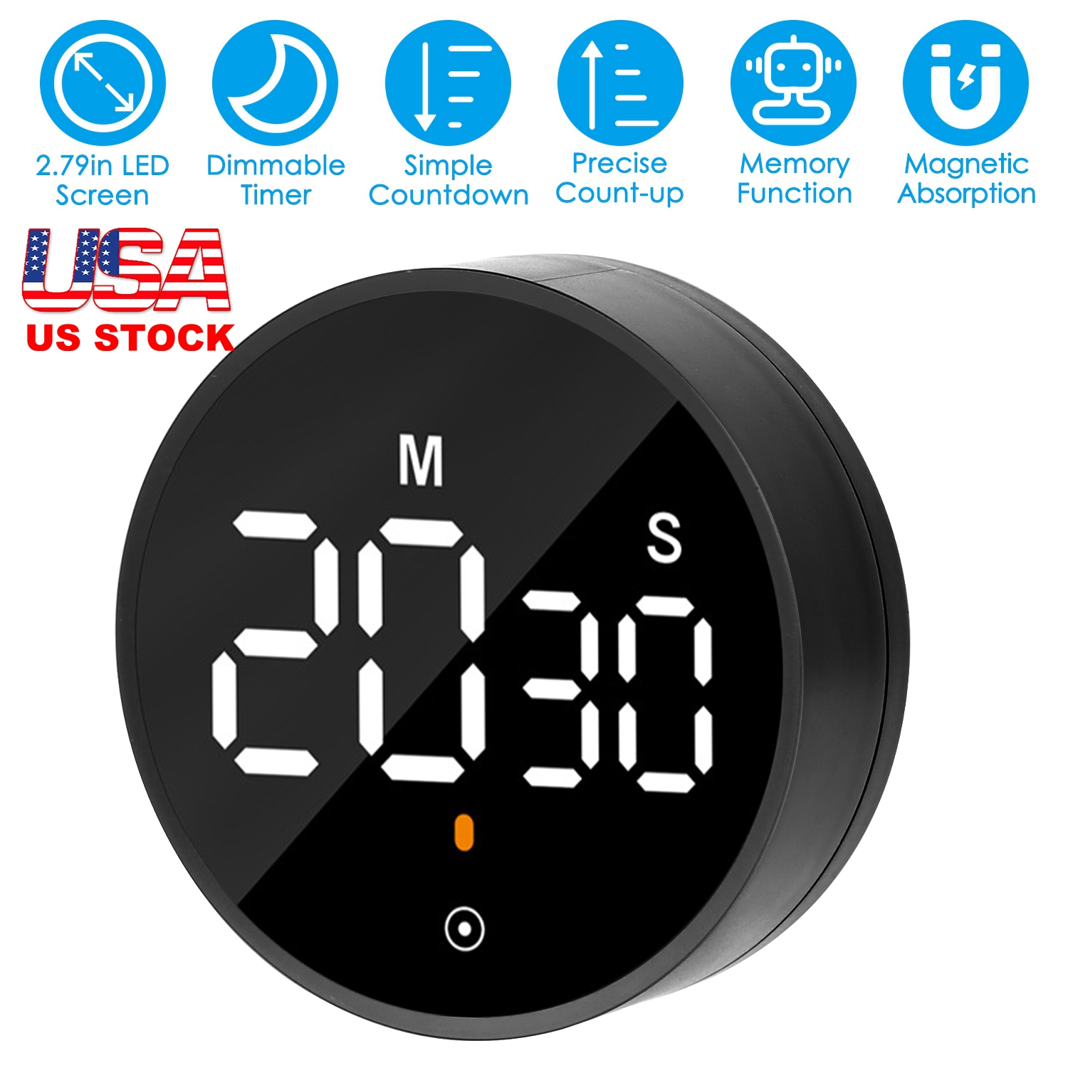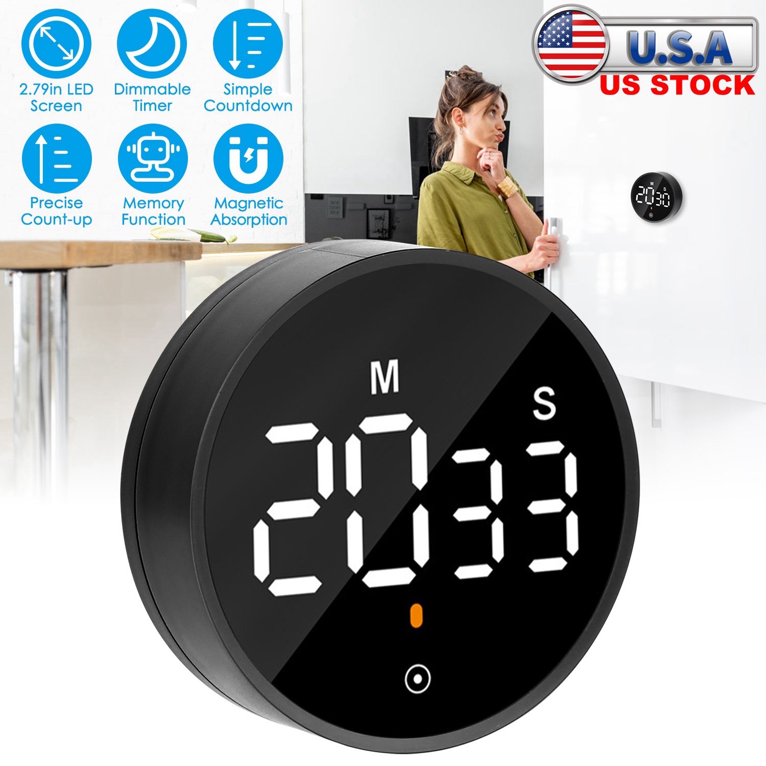 Home > 2.79in LED Digital Kitchen Timer Electronic Countdown Timer Dimmable Mutable Magnetic Clock for Classroom Library Office Cooking
