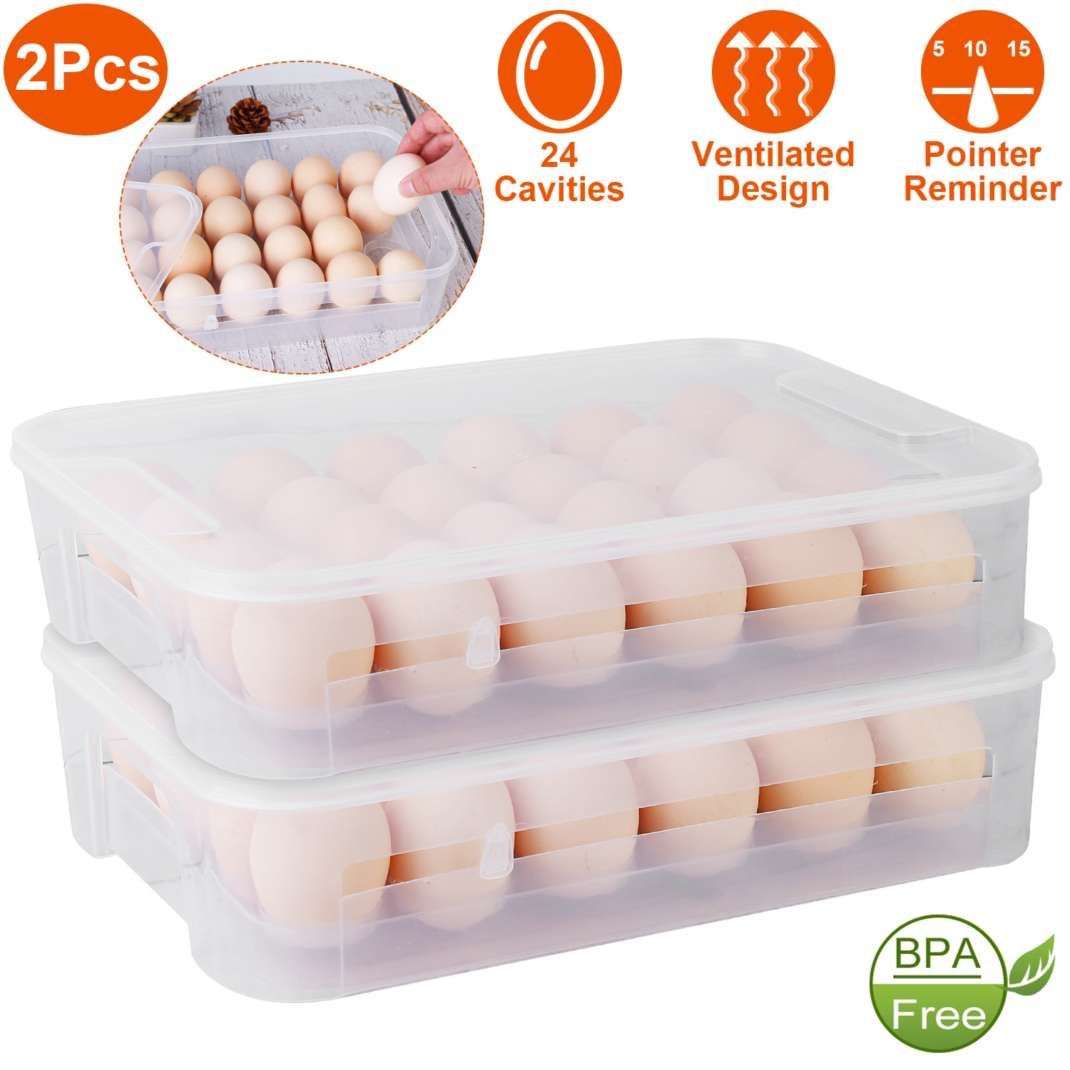 2Pcs Plastic Egg Holder Stackable Egg Storage Box Egg Rack for Refrigerator 24 Cavity Per Container
