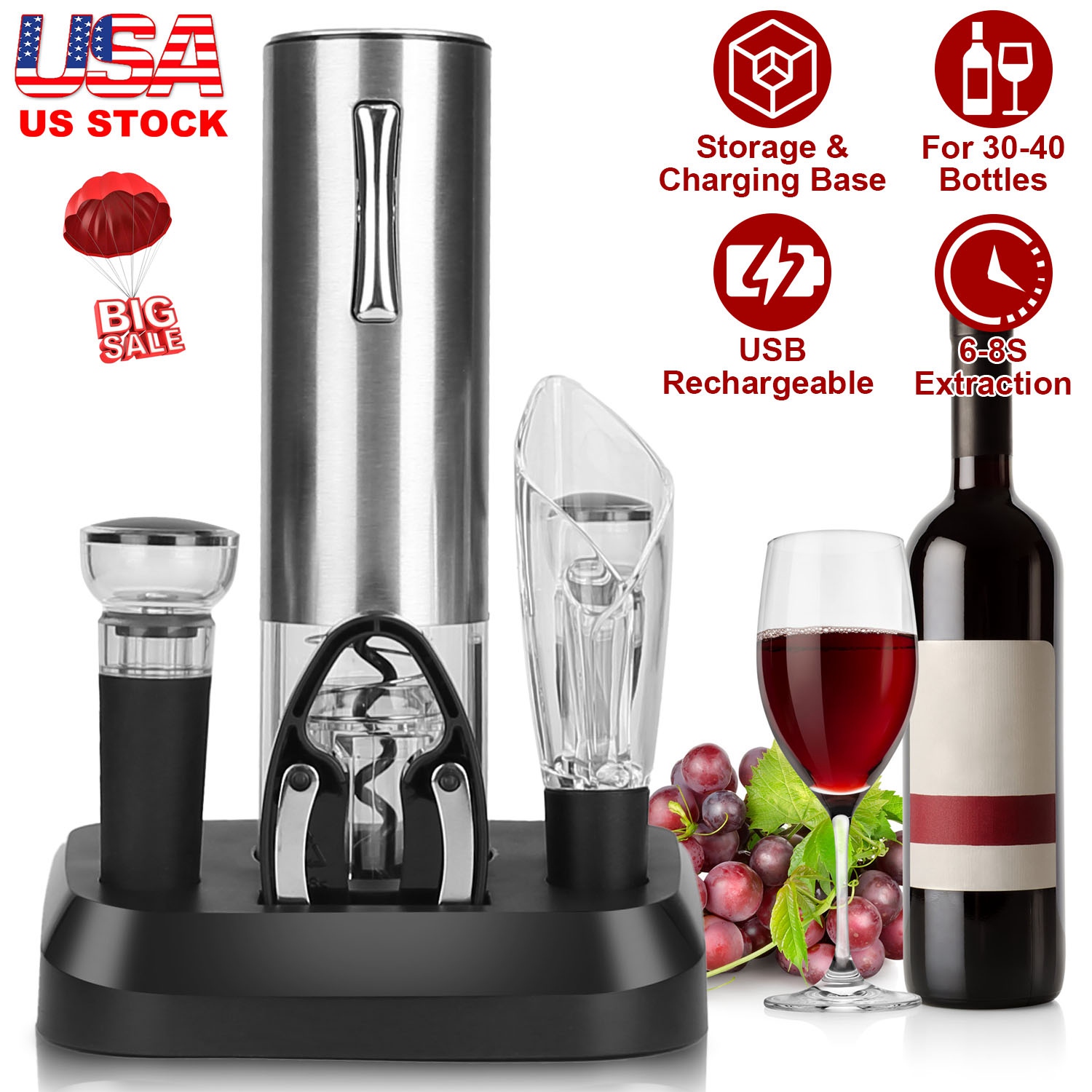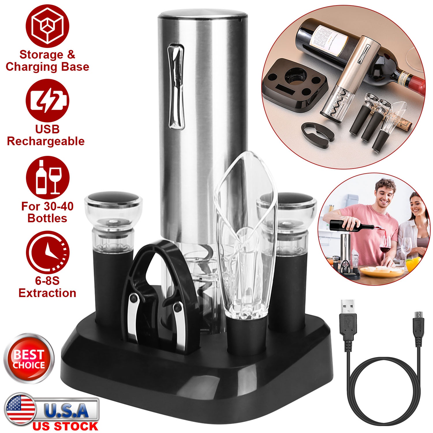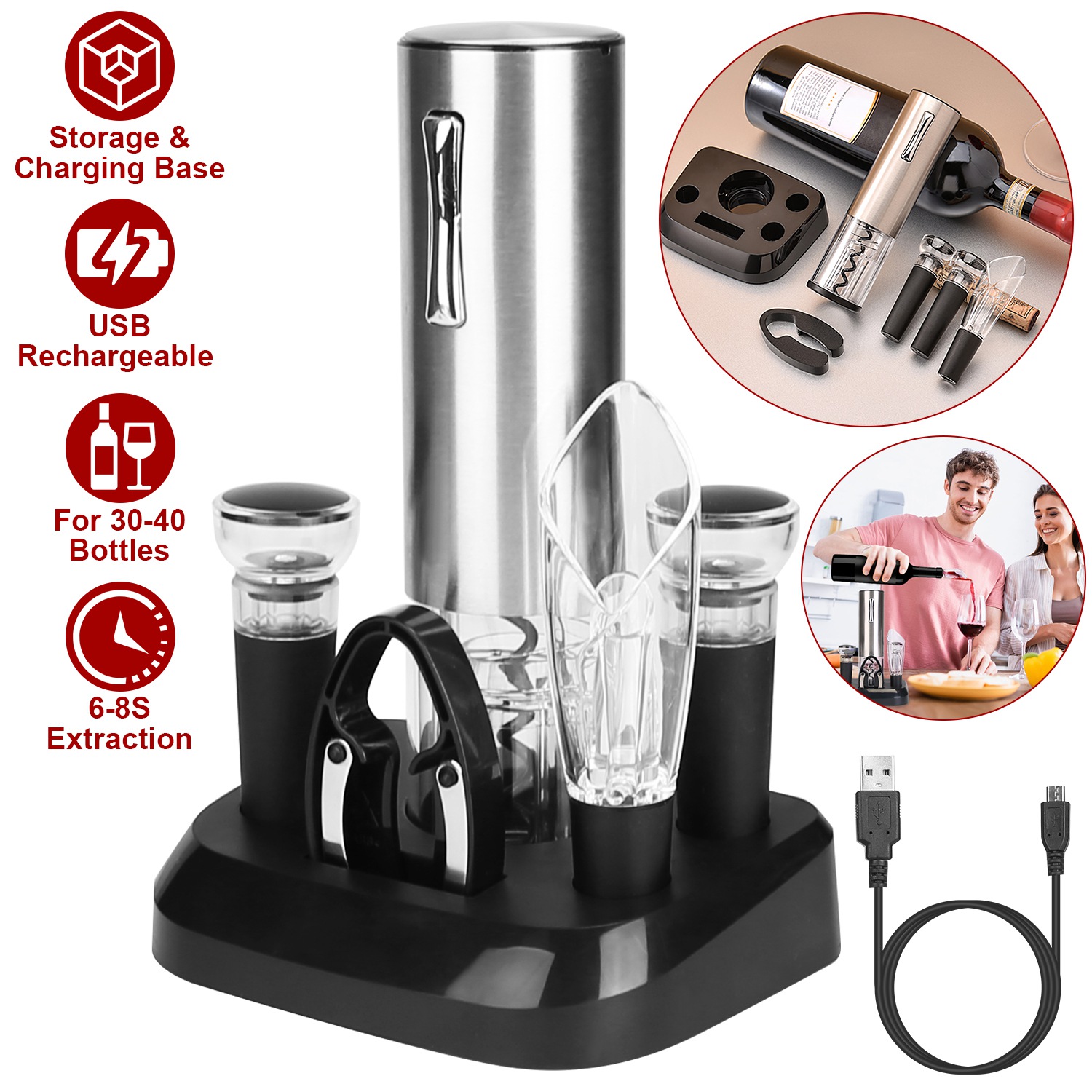 5-In-1 Electric Wine Opener Set USB Rechargeable Wine Corkscrew Bottle Opener Cordless Corkscrew Remover with Charging Base with Wine Pourer Vacuum St 5-In-1 Electric Wine Opener Set USB Rechargeable Wine Corkscrew Bottle Opener Cordless Corkscrew Remover with Charging Base with Wine Pourer Vacuum St 5-In-1 Electric Wine Opener Set USB Rechargeable Wine Corkscrew Bottle Opener Cordless Corkscrew Remover with Charging Base with Wine Pourer Vacuum St 5-In-1 Electric Wine Opener Set USB Rechargeable Wine Corkscrew Bottle Opener Cordless Corkscrew Remover with Charging Base with Wine Pourer Vacuum St 5-In-1 Electric Wine Opener Set USB Rechargeable Wine Corkscrew Bottle Opener Cordless Corkscrew Remover with Charging Base with Wine Pourer Vacuum St
