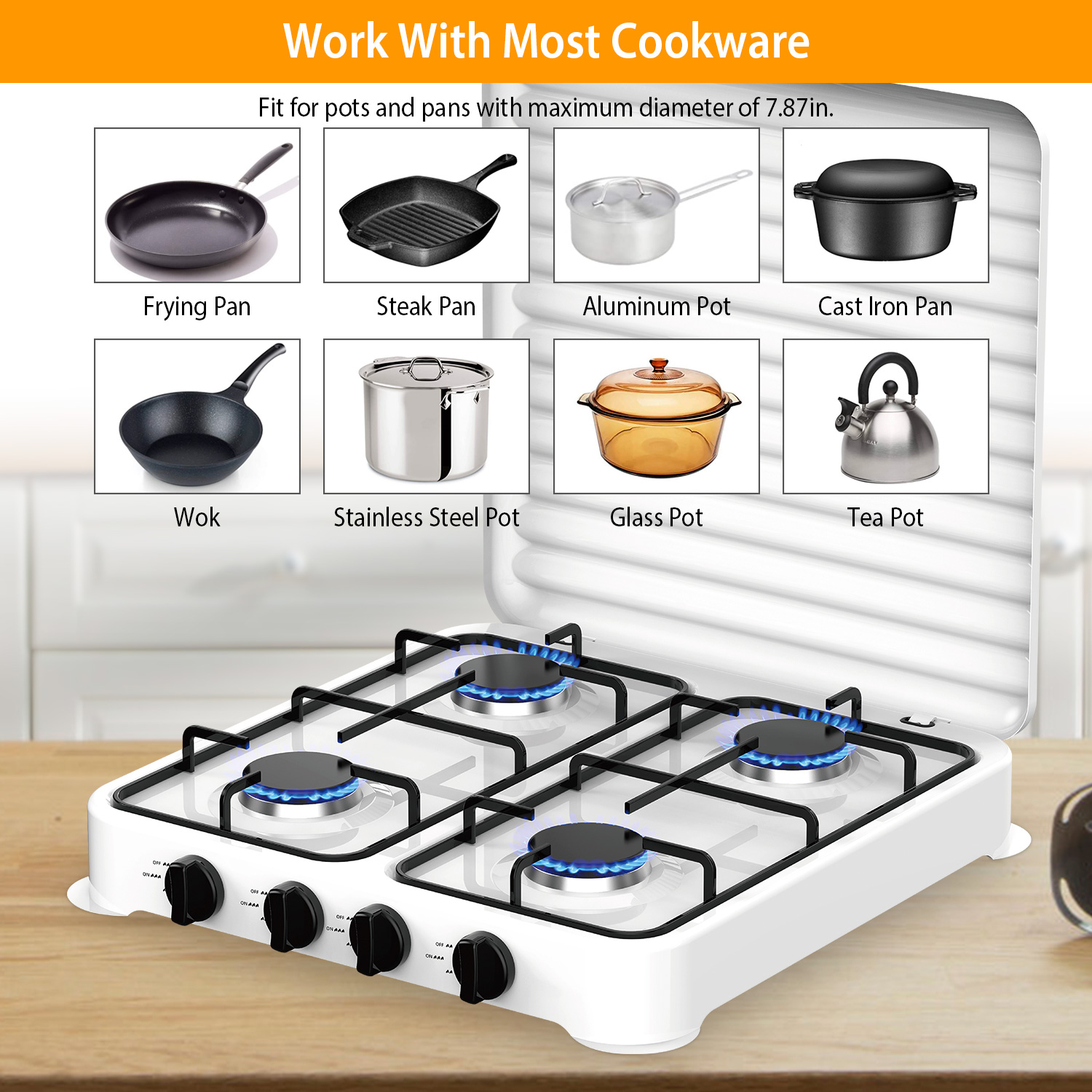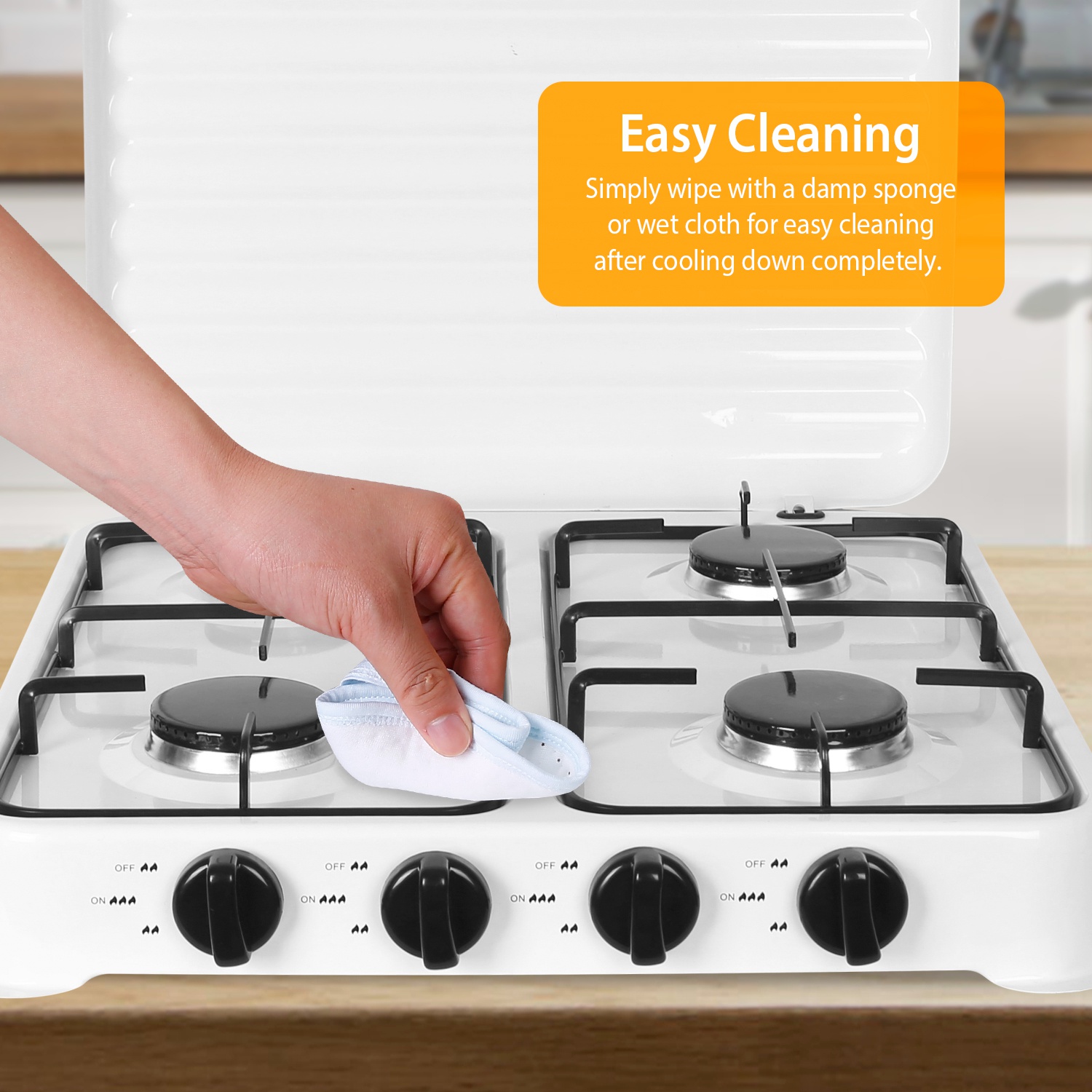 Enjoying life starts with enjoying cooking and eating. This 4-burner stove is a must-have in your kitchen! Designed with 4pcs burners, the stove can hold four pans/ pots at once, perfect for preparing steaks, burgers, bacon, sausage, etc.. Great to be used at home, in dorms/ offices/ apartment and more occasions. With a lid for portable storage and carrying.
