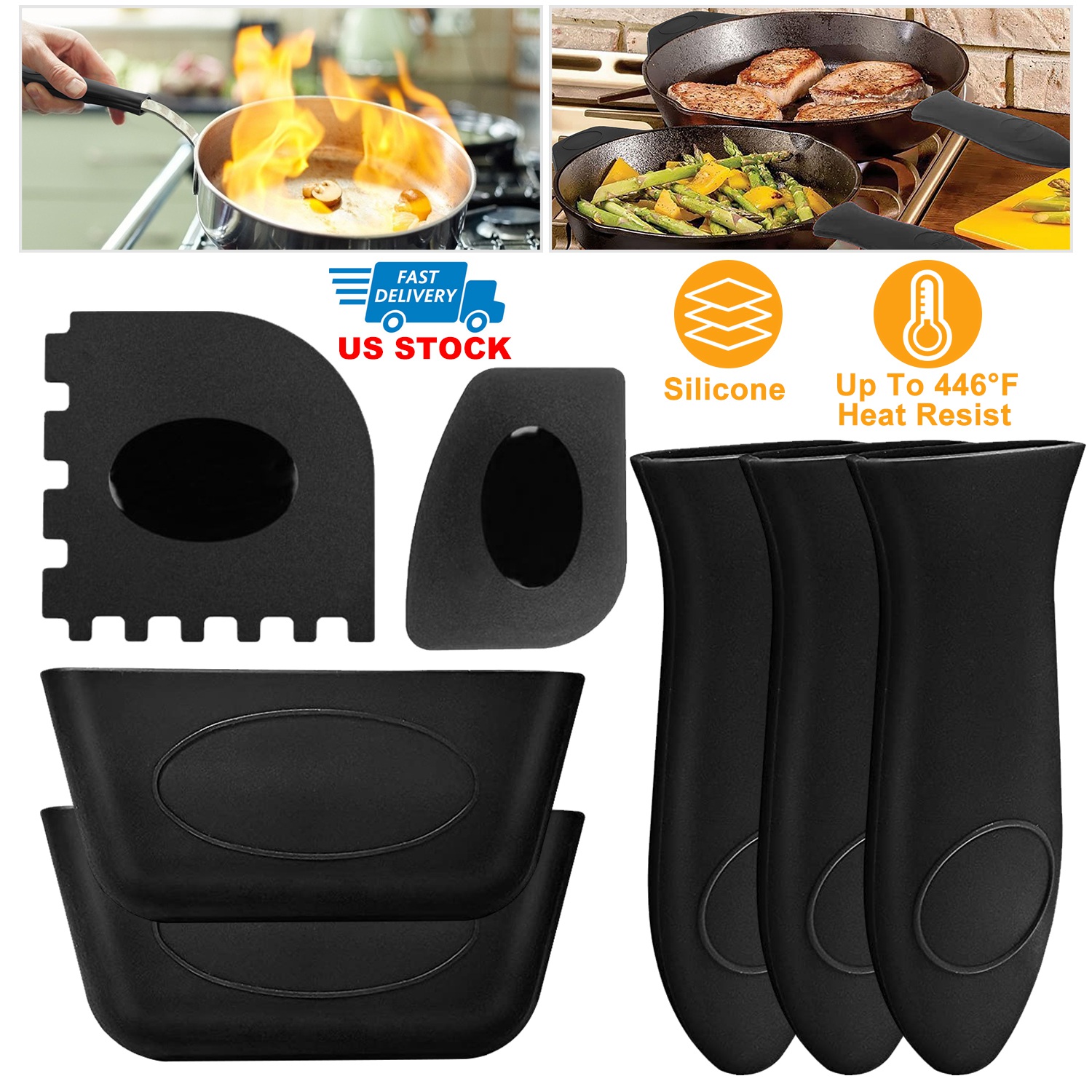 Home > 7Pcs Silicone Hot Handle Holder Non Slip Pot Handle Cover Sleeve Heat Resistant Potholder For Cast Iron Skillets Frying Pans Aluminum Cookware Handles